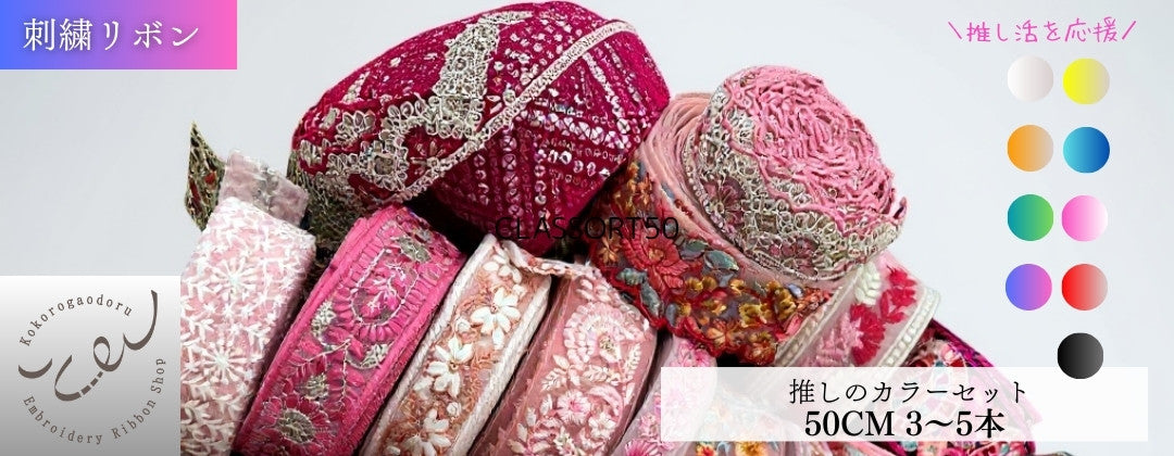 インドから独自ルートで仕入れ3000種類以上のリボンを全色展開し、推し活・ハンドメイド・衣装制作のための特別な刺繍リボンをご用意しています。