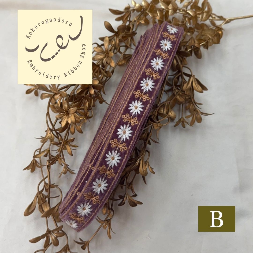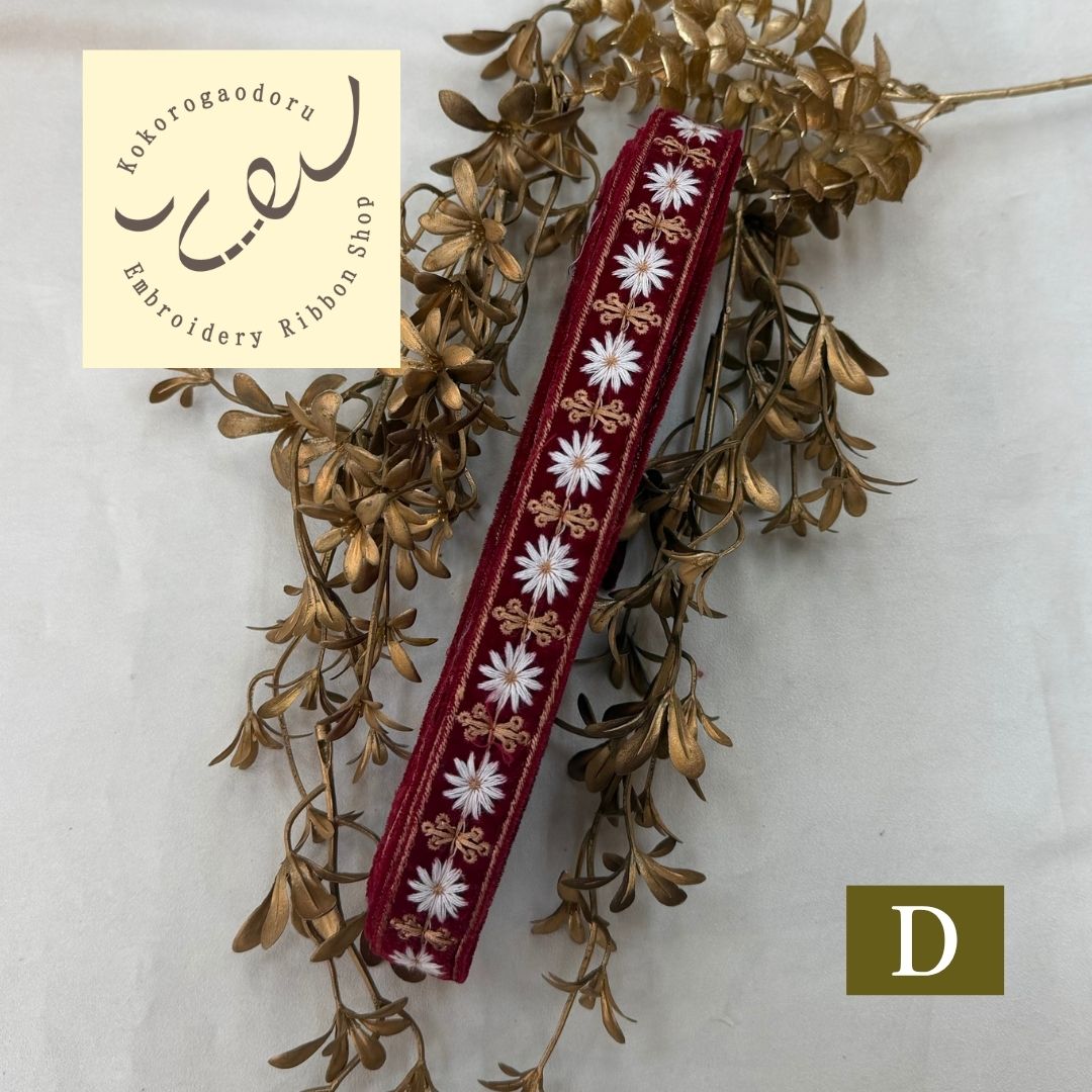 【50cm単位】刺繍リボン 細幅インド刺繍リボン ノンスパンコール 布地 マーガレット夫人のベルベット 幅約2.5cm 251112001