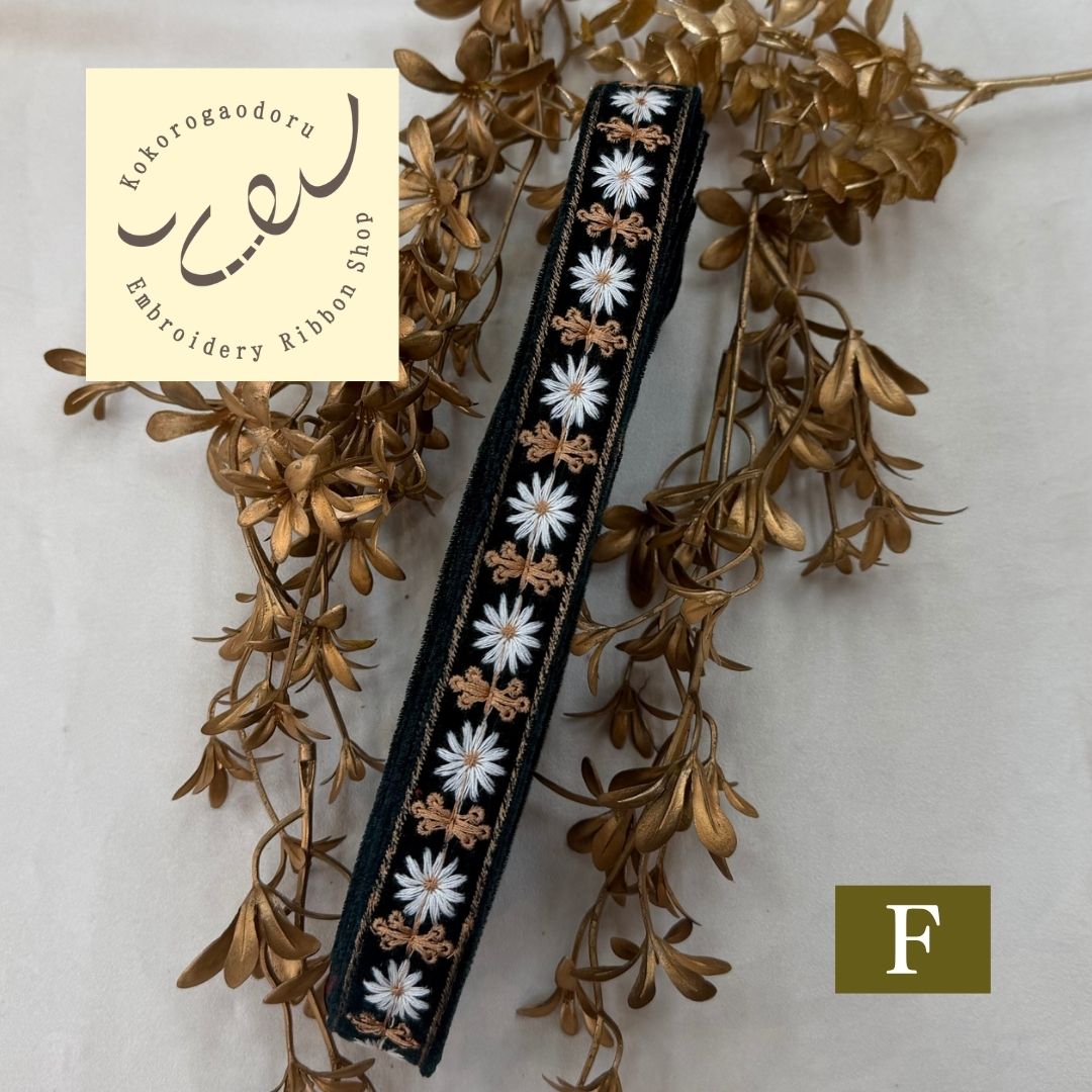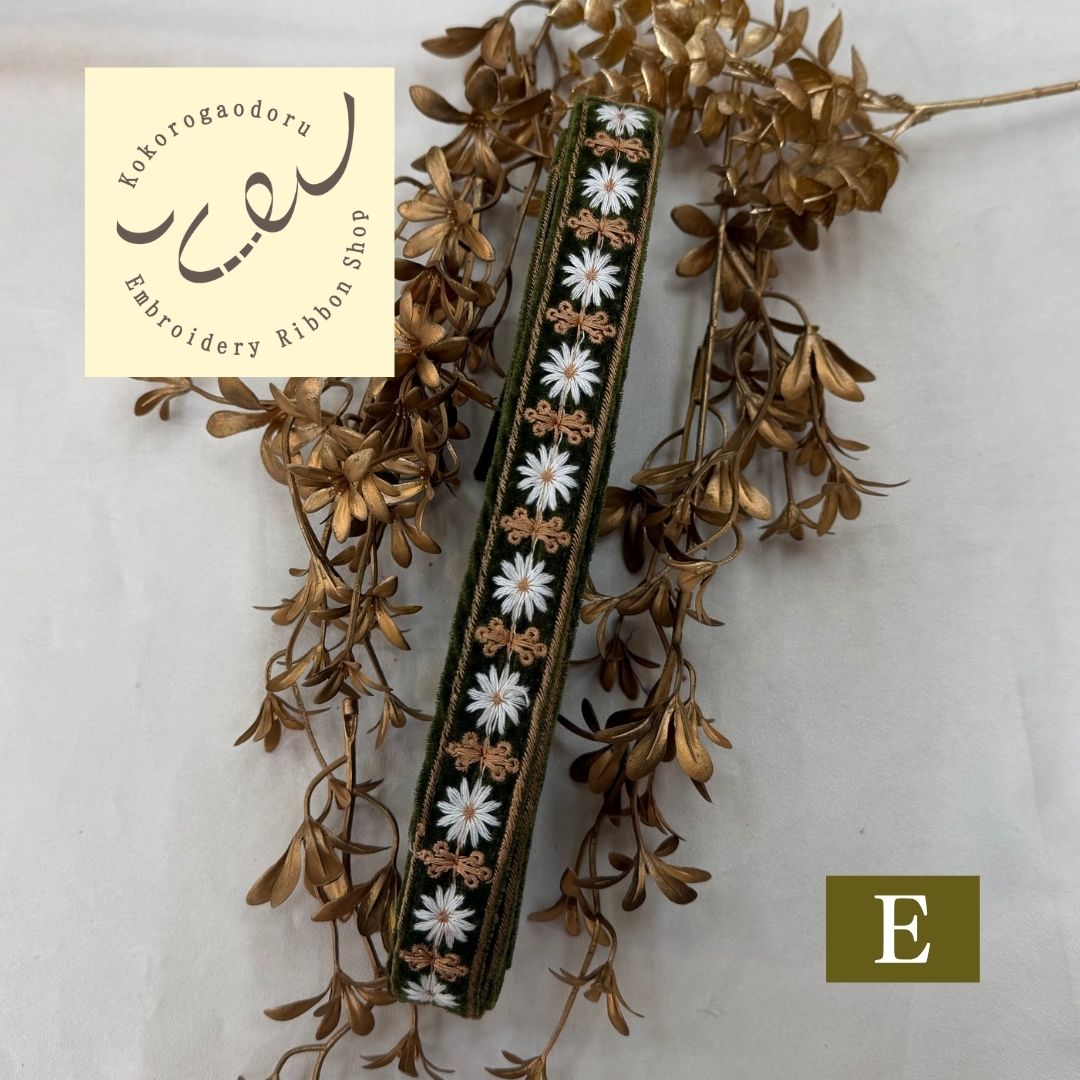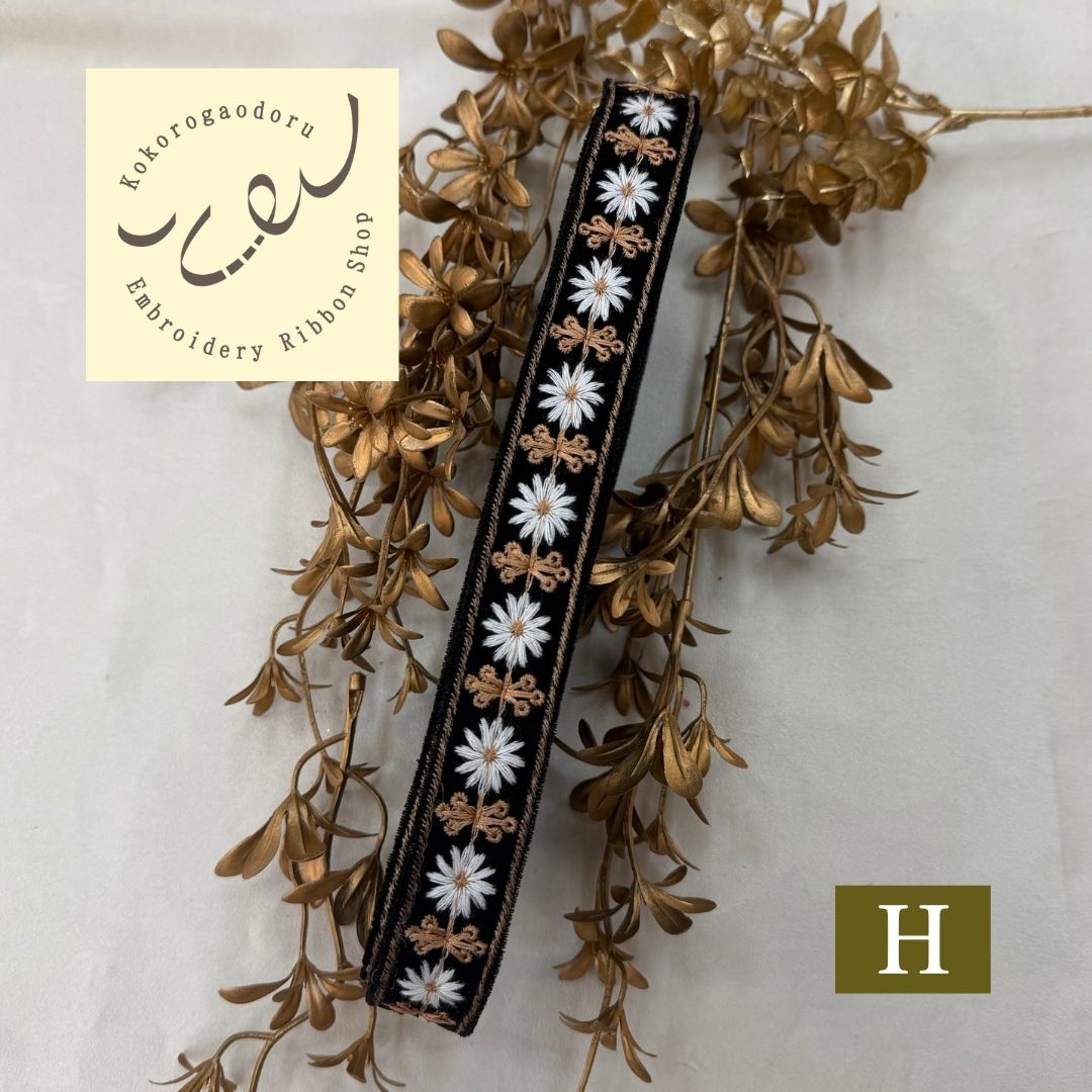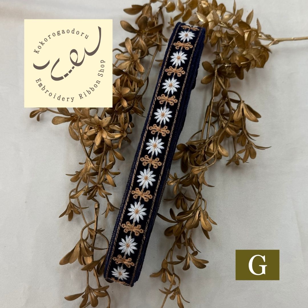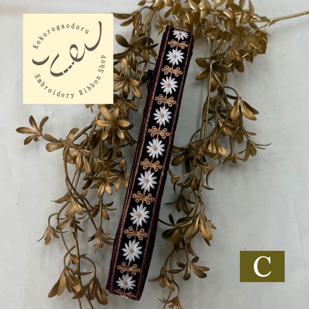 ベルベットにマーガレットのお花の刺繍が施されたリボンです。
