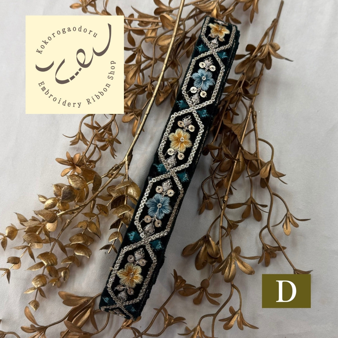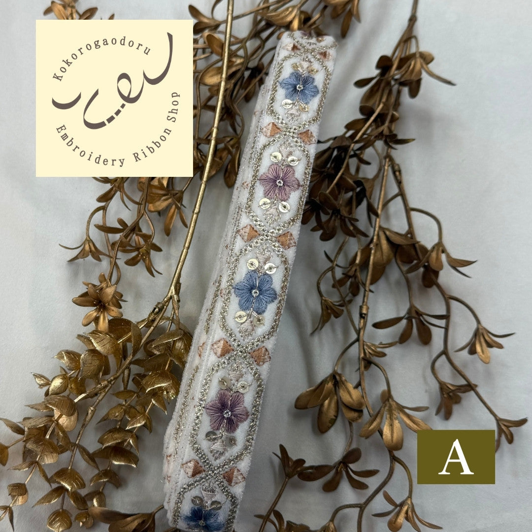 手芸 刺繍リボン インド刺繍リボン ソーイング ハンドメイド 着物 半衿 材料 素材 ハンドメイド材料 刺繍りぼん リボン 洋裁 生地 布 ブレード スパンコール
