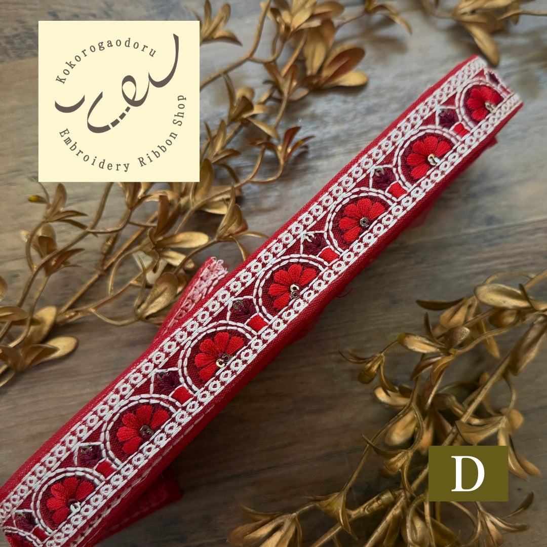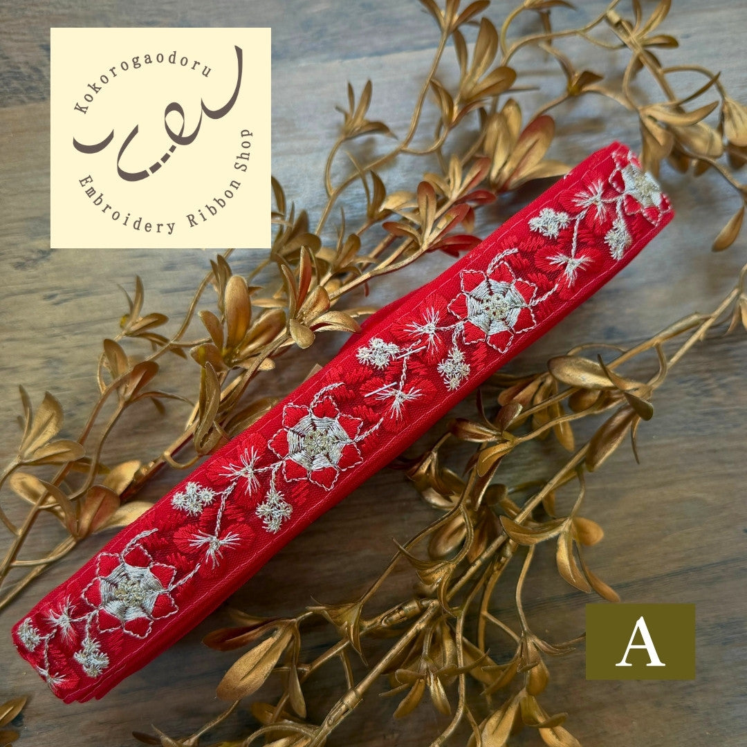 刺繍リボン/赤い刺繍リボン/インド刺繍リボン/ハンドメイド材料/手芸素材/