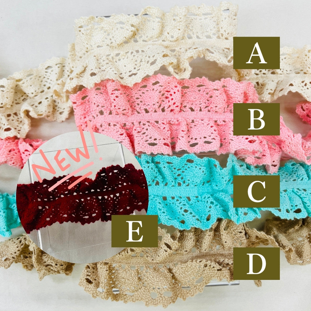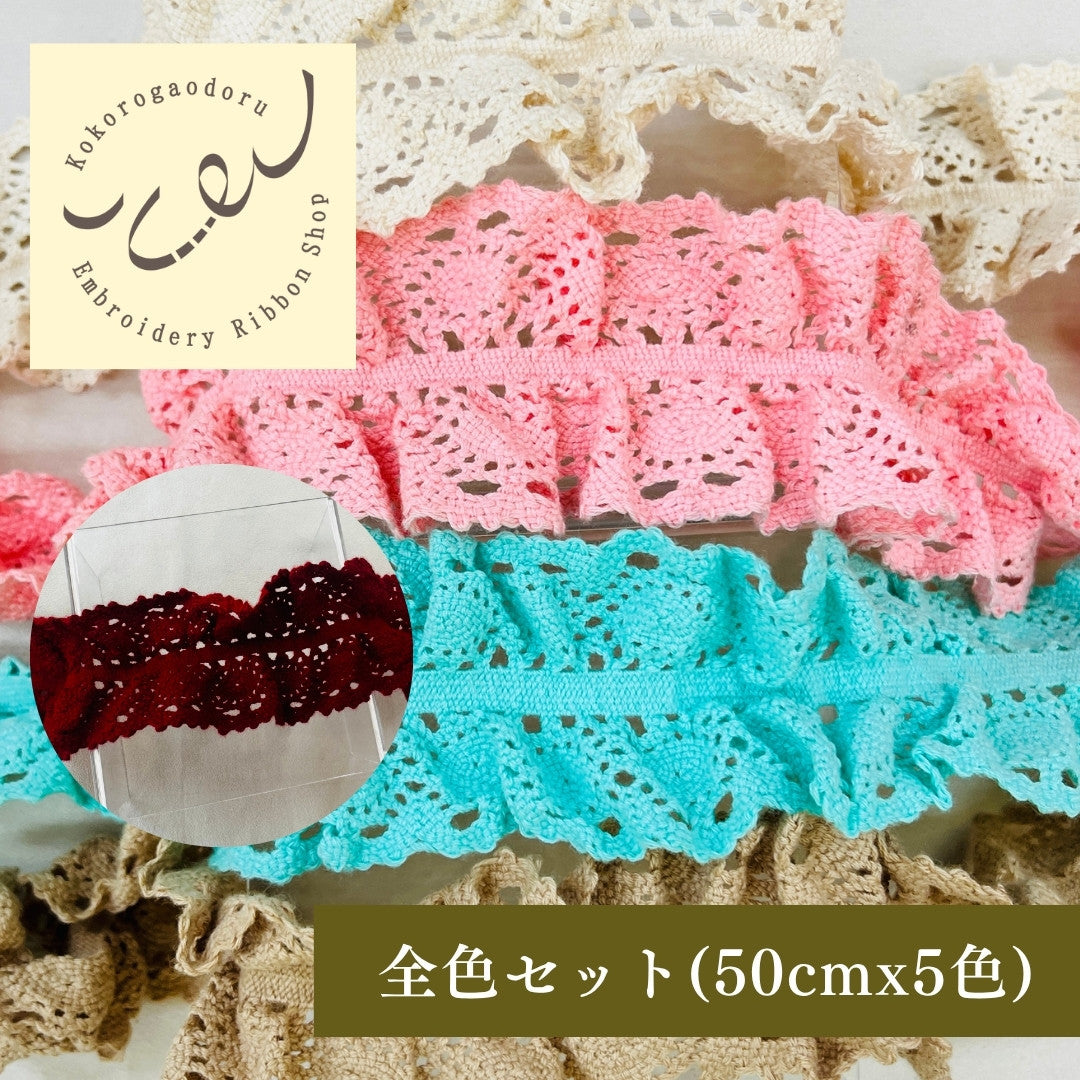 【50cm単位】 コットンストレッチレース リボンに捧ぐ フリルの魔法 サイズ約5.3cm SLT2505002