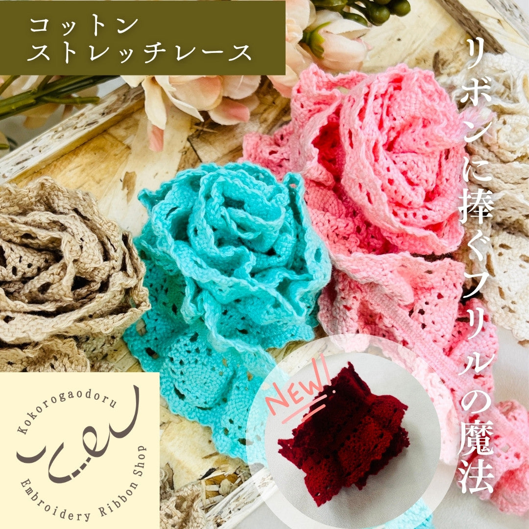 可愛らしいストレッチレースが入荷しましたよ。