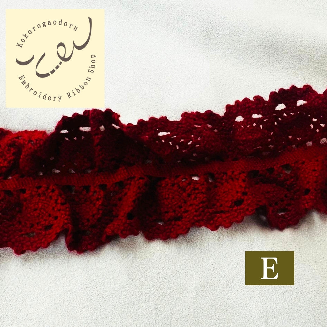 こちらのレースは50cm単位でのカット売りとなります。中心にゴムを使用しているため、カットの際多少の誤差が生じる場合がございます。